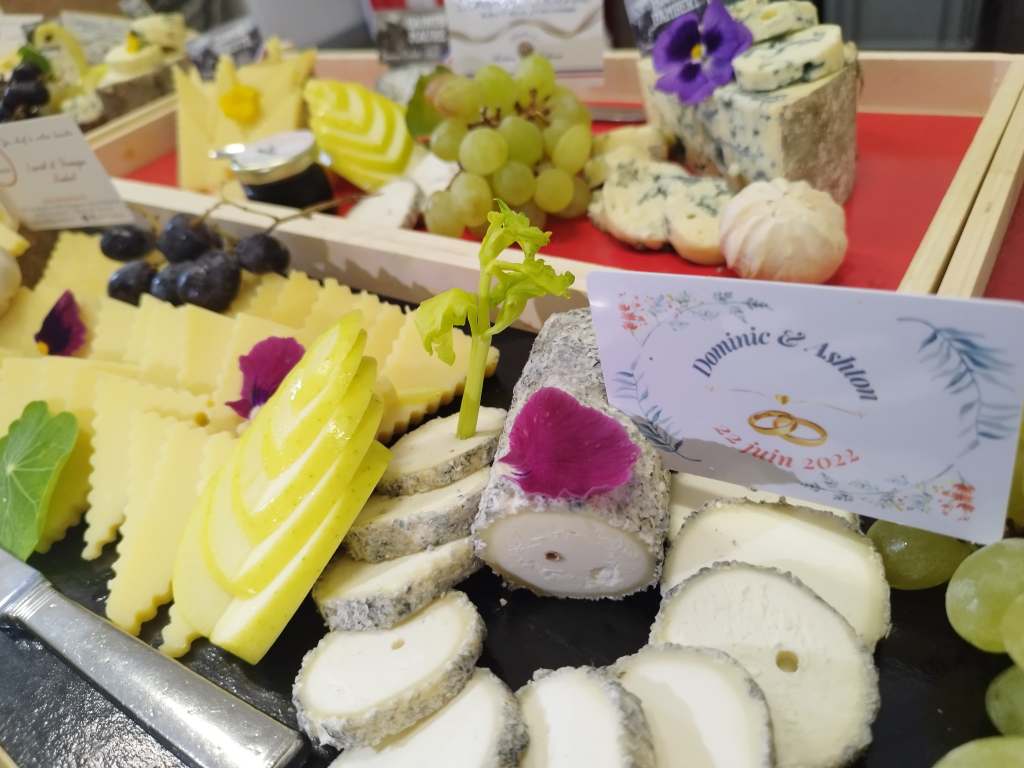 A vous les découpes de Pata Negra pour un thème hispanique, ou une Tarte fine au deux poivres Sarawak et Sichouan, ricotta au basilic et au bleuet, tapenade de tomates séchées et une pièce montée agrémentées de fleurs fraîches pour un mariage mettant la nature à l’honneur, ou pourquoi pas un bar à huitres ?!?